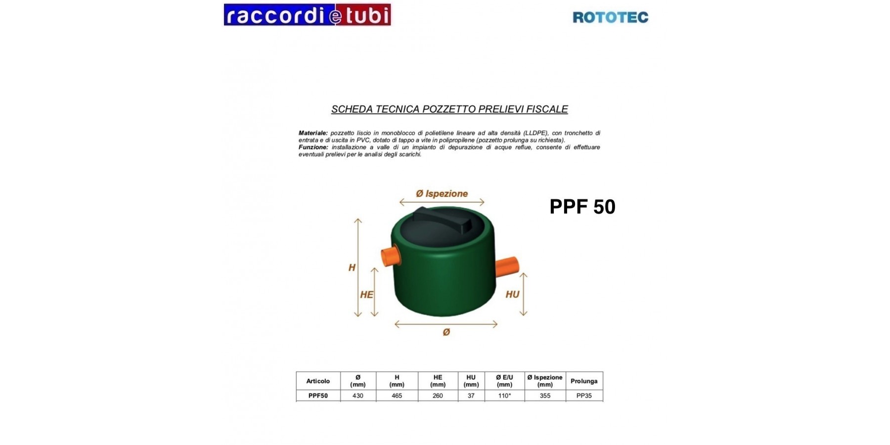 Material: glatter monolithischer Schacht aus linear dichtem Polyethylen (LLDPE), mit Ein- und Auslassstutzen aus PVC, ausgestattet mit Schraubverschluss aus Polypropylen (Verlängerungsschacht auf Anfrage). Funktion: Installation nach einer Kläranlage zur Entnahme von Proben für die Abwasseranalyse.