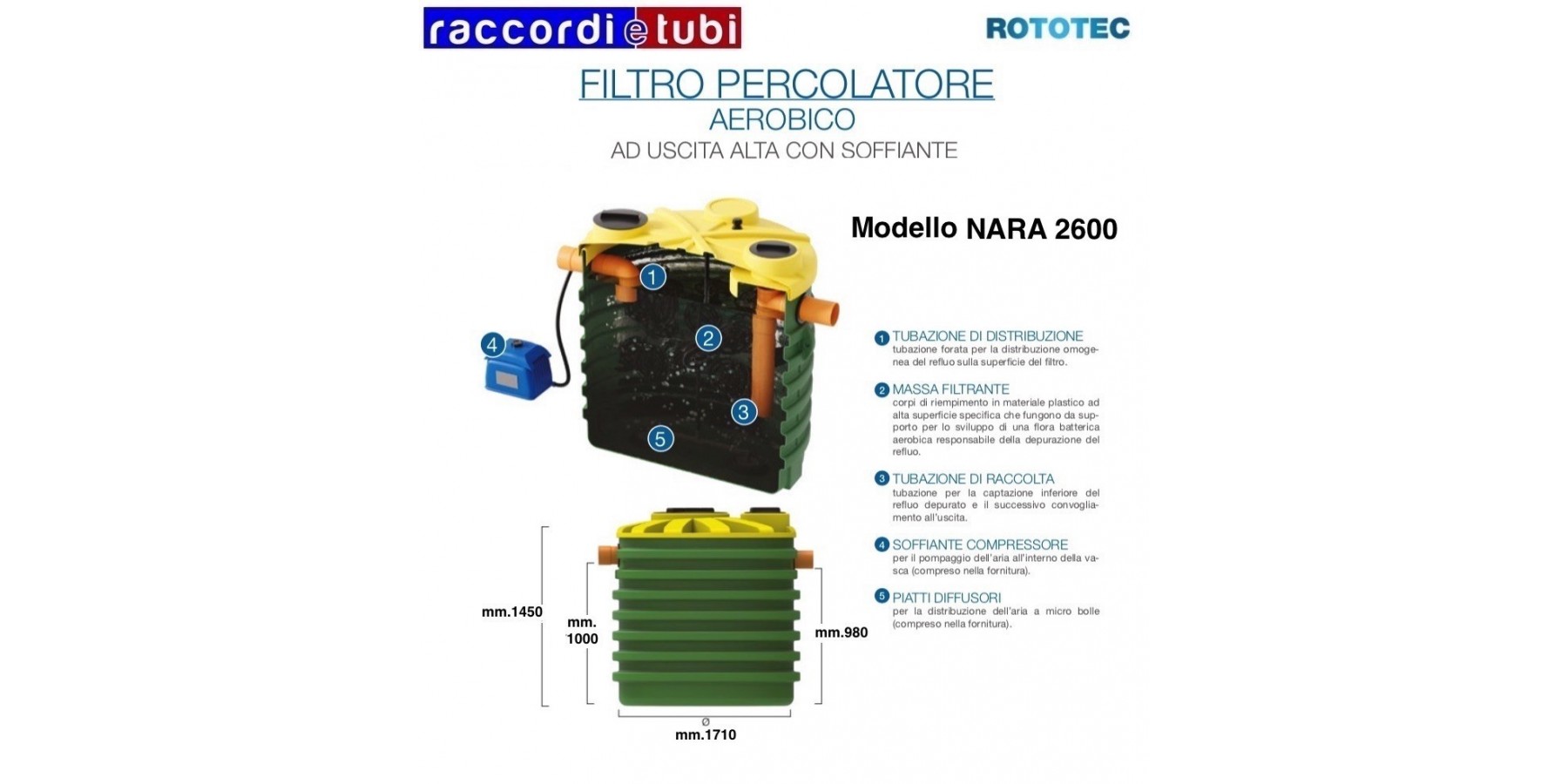 Der Perkolationsfilter ist ein biologischer Reaktor, in dem sich Mikroorganismen entwickeln, die das Abwasser reinigen. Diese Mikroorganismen wachsen auf der Oberfläche spezieller Füllkörper, die locker angeordnet sind. Die gleichmäßige Verteilung des Abwassers durch den Filter gewährleistet den maximalen Kontakt zwischen dem abzubauenden organischen Material und den Biofilmen, die die Füllkörper umgeben. Speziell verbraucht die im aerob arbeitenden Perkolationsfilter mit hohem Austritt wachsende und sich entwickelnde Bakterienflora die organische Last im Abwasser in Gegenwart von Sauerstoff, der kontinuierlich durch einen externen Kompressor in das Becken eingebracht und von Verteilertellern verteilt wird. Hochleistungsaerobe Perkolationsfilter mit Gebläse werden als sekundäre Behandlung von häuslichem oder vergleichbarem Abwasser eingesetzt. Sie müssen einer Entfettung und einer primären Sedimentationsphase (Imhoff-Becken oder Faulbehälter) vorausgehen, sodass das behandelte Abwasser in unterirdische Versickerung oder in oberirdische Gewässer eingeleitet werden kann.