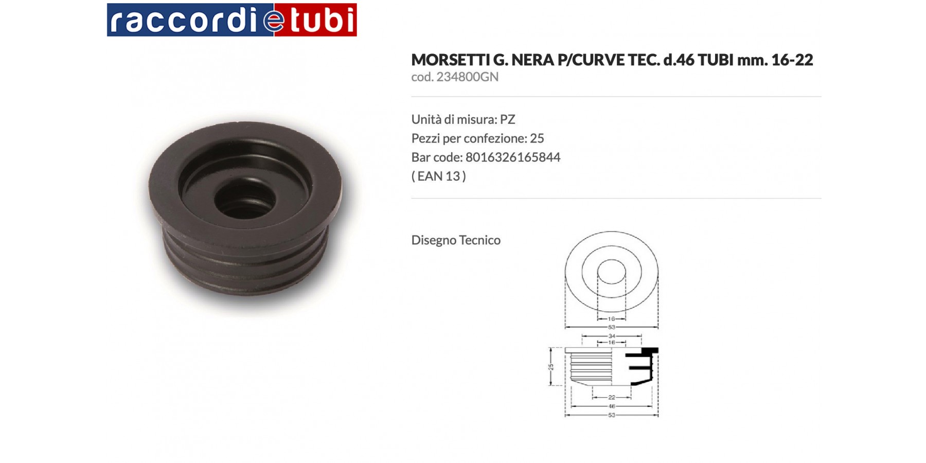 SCHELLE FÜR TECHNISCHE KRÜMMUNG AUS SCHWARZEM GUMMI 46X16*32