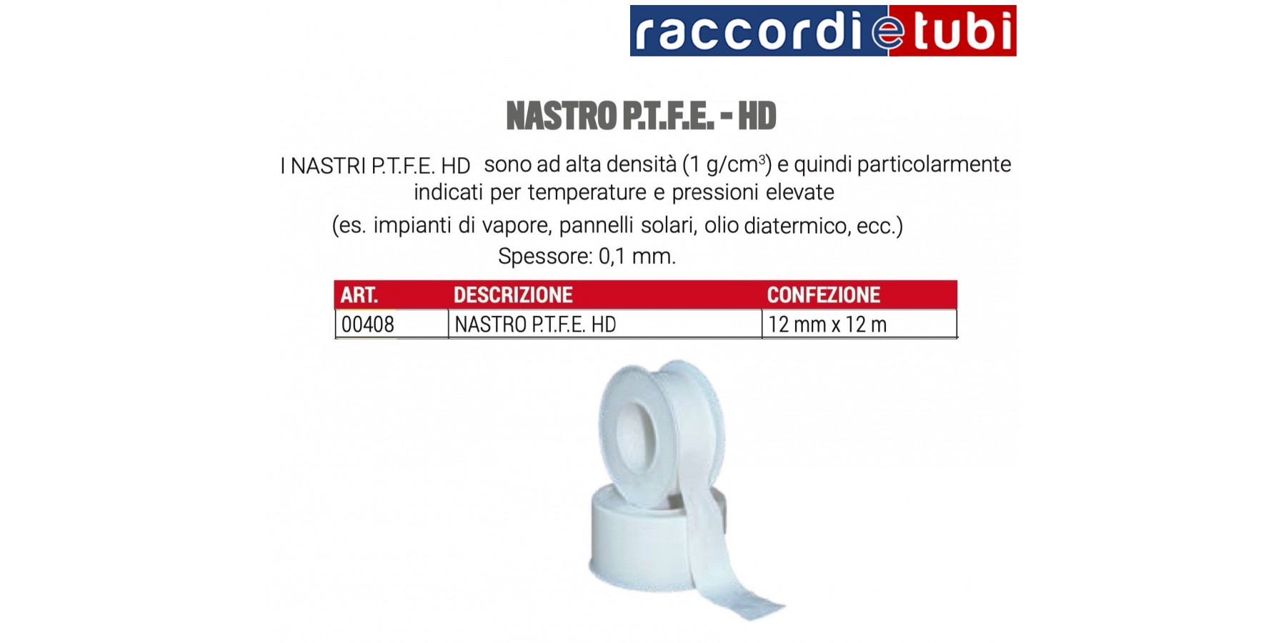 Die P.T.F.E. HD und HD ROSA Bänder sind hochdicht (1 g/cm3) und daher besonders geeignet für hohe Temperaturen und Drücke (z.B. Dampfanlagen, Solarpanels, Thermoöl, etc.). Stärke: 0,1 mm.