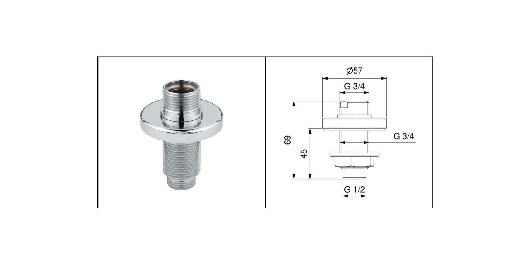 Basisplatte zur Befestigung auf Flächen für Vordusche und Drehrohre DURCHMESSER 3/4 MÄNNLICH