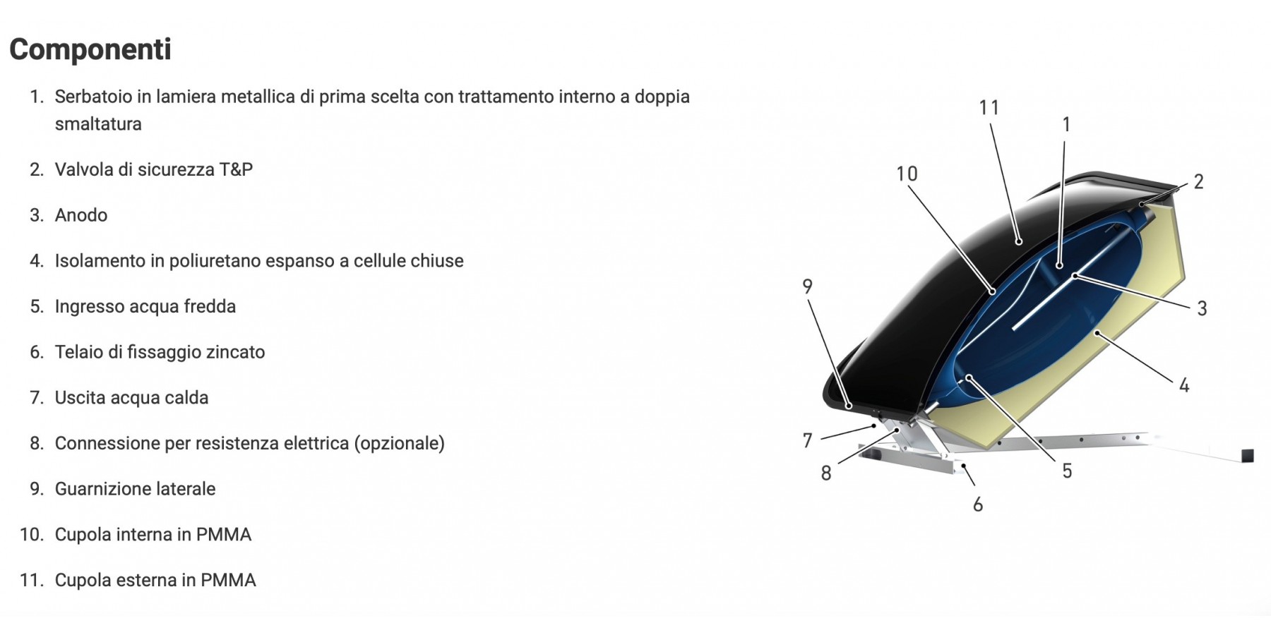 DISCOTERM S ist mit einem T&P-Sicherheitsventil ausgestattet, das auch bei übermäßiger Temperatur aktiv ist. Es ist ein vielseitiges Produkt und kann direkt verwendet werden, entweder durch Installation eines Mischventils vor den Verbrauchsstellen oder indem bereits vorgemischtes Wasser zu den Verbrauchern geleitet wird.