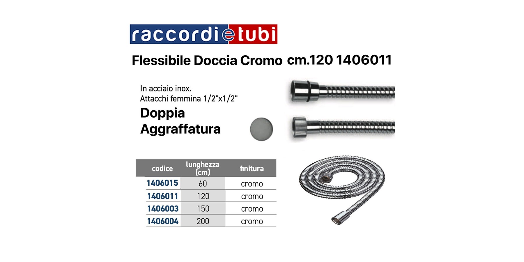 DUSCHSCHLAUCH CM.120 F/F D.1/2''x1/2'' VERCHROMT