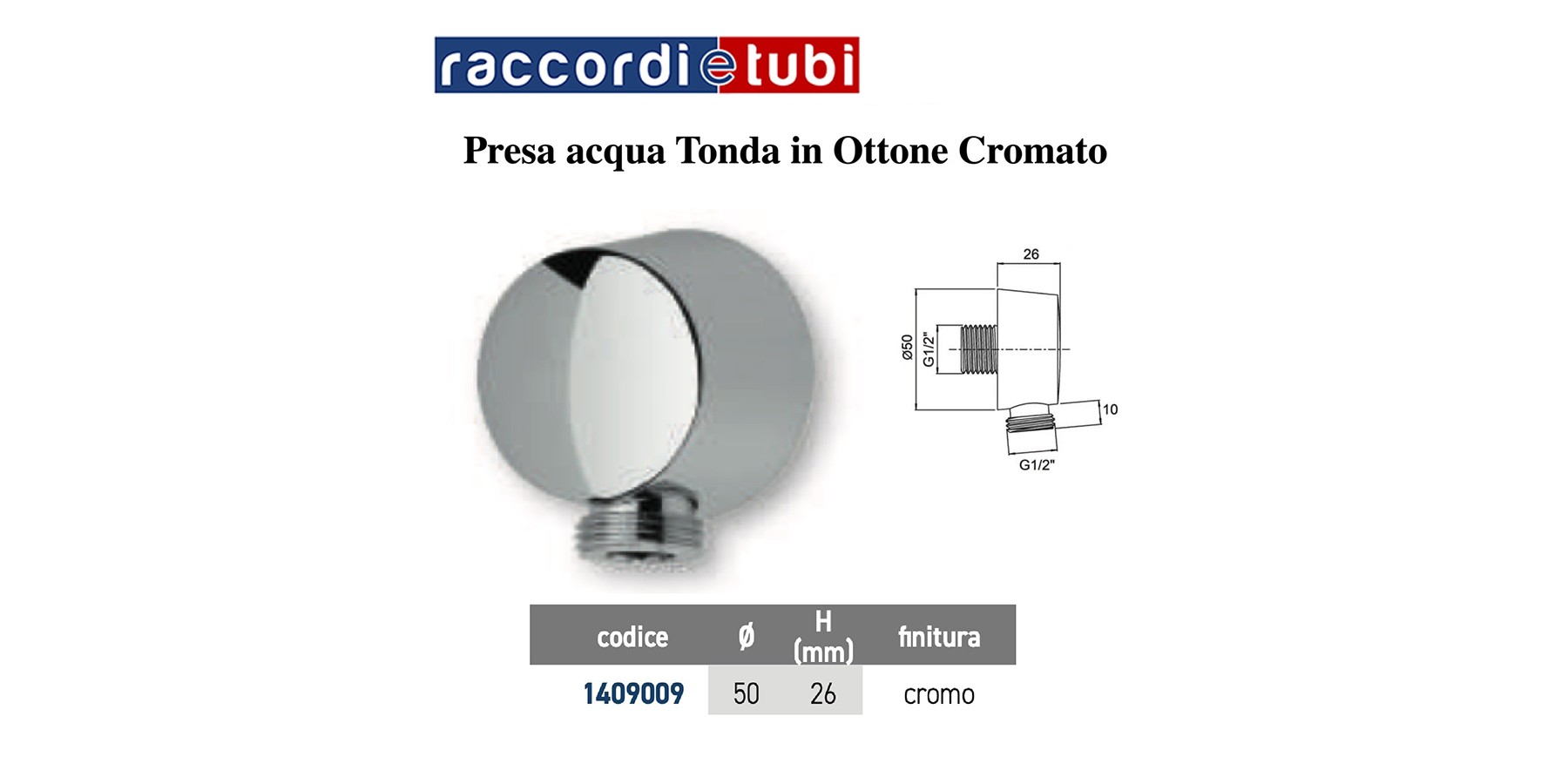 Wasseranschluss mit "rundem" Profil für die Verbindung der Brauseschlauchanlage: verchromtes Metall, 1/2" Außengewinde, Durchmesser 50 mm