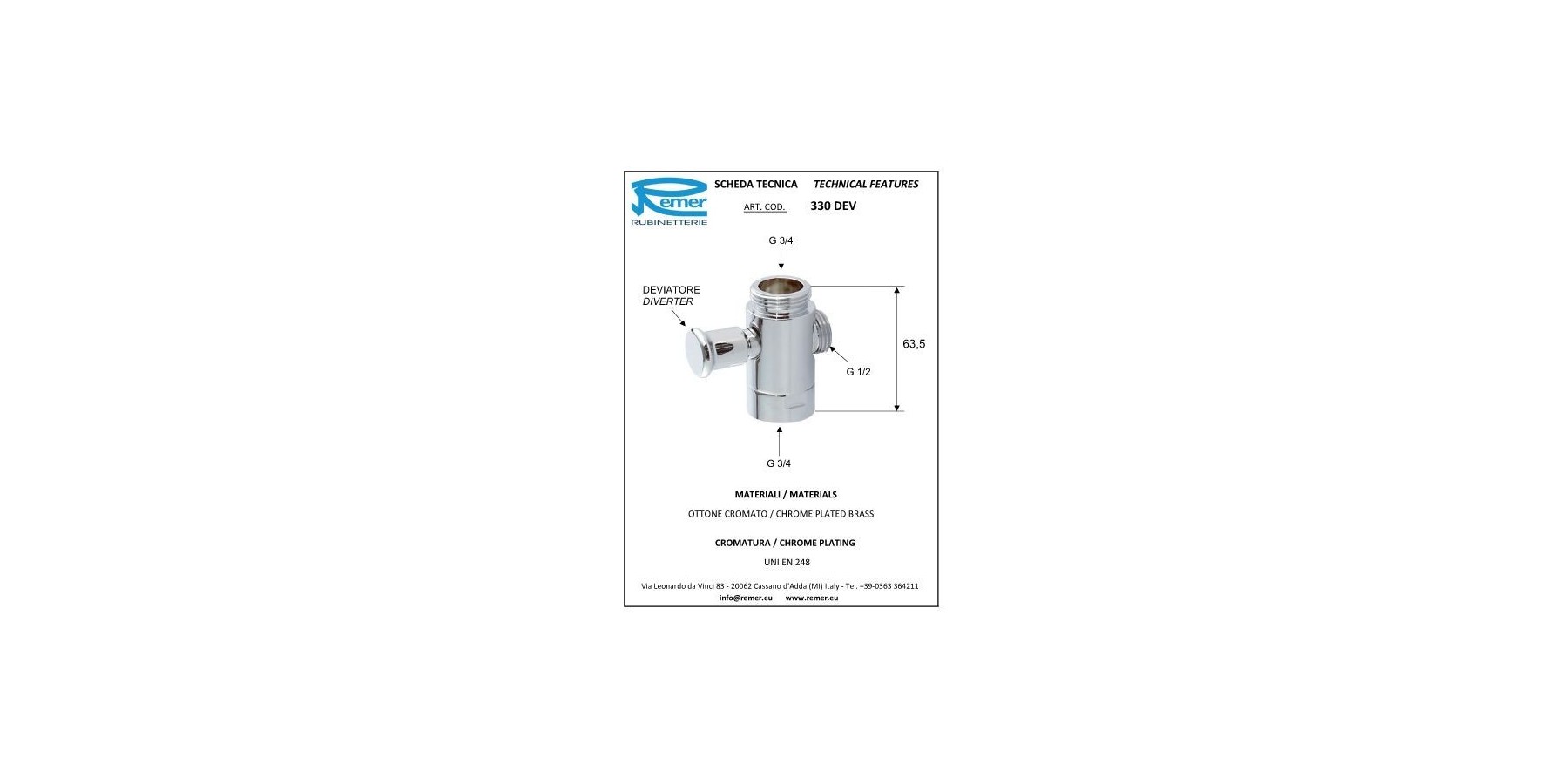 UMLEITVENTIL REMER 3/4X1/2X3/4 FÜR SÄULE 330F