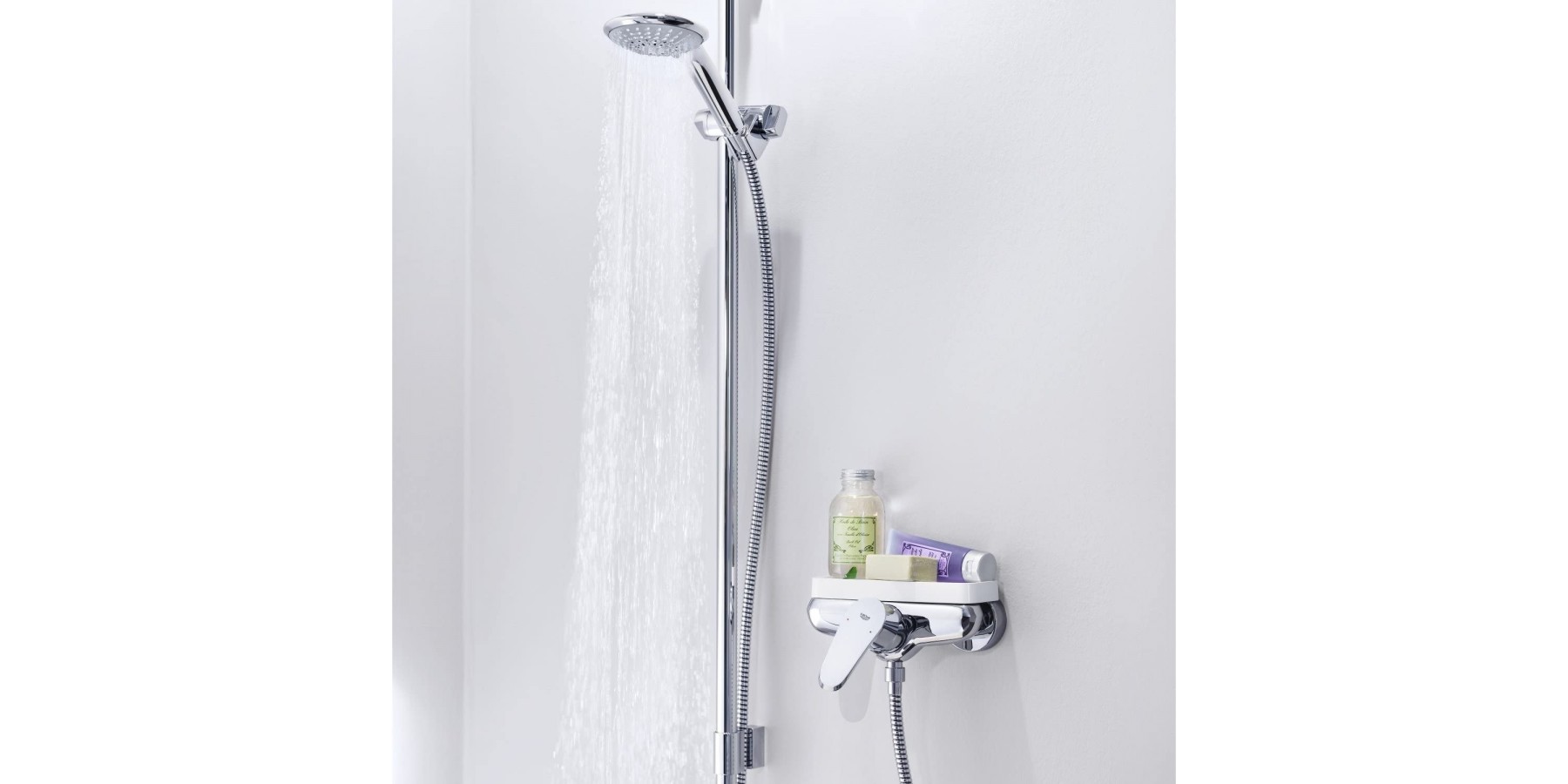 Set bestehend aus: Duschstange Metall Ø 22 mm, 60 cm lang, mit