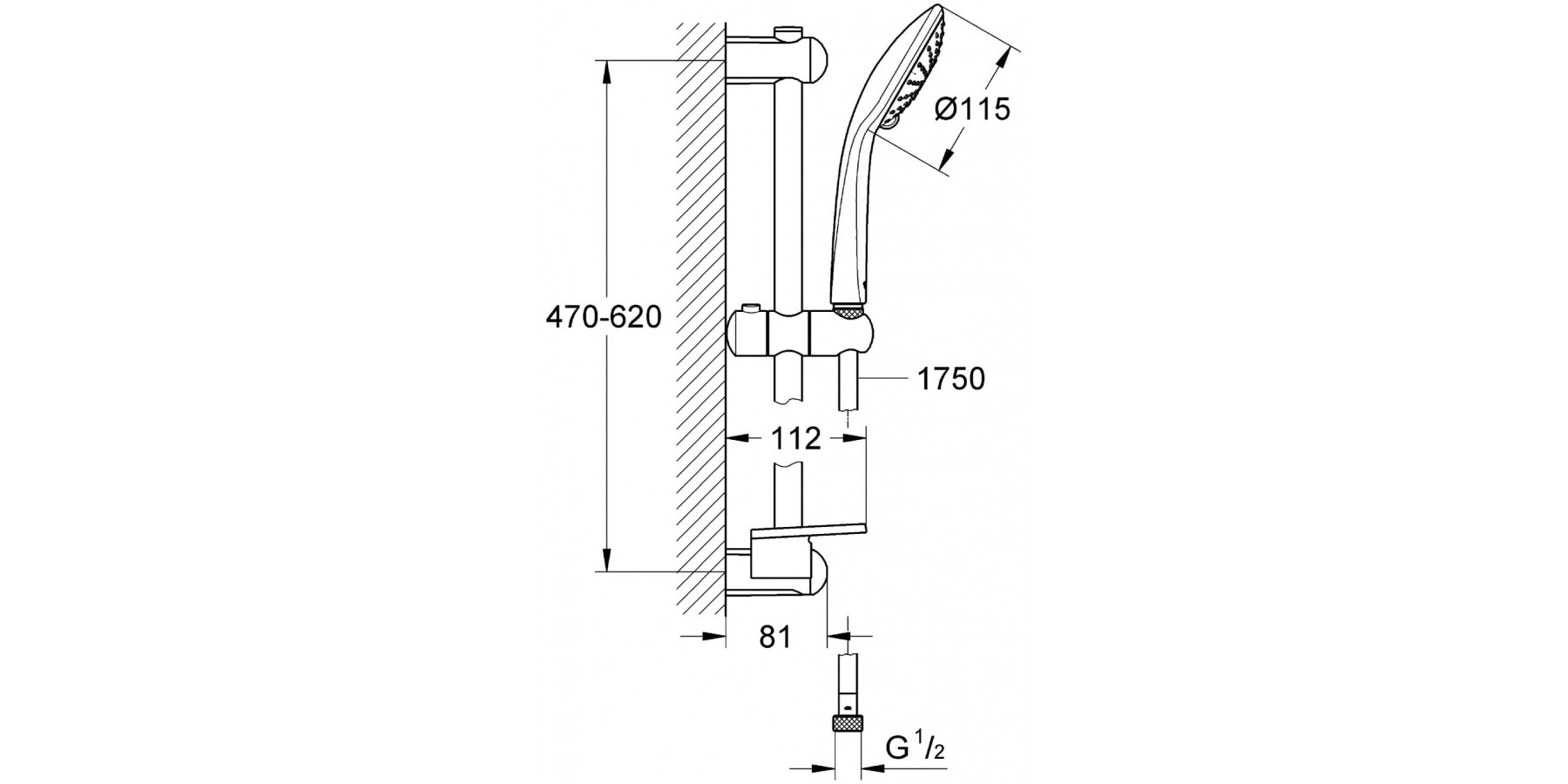 Set bestehend aus: Duschstange aus Metall D.22 mm, 60 cm lang, mit
