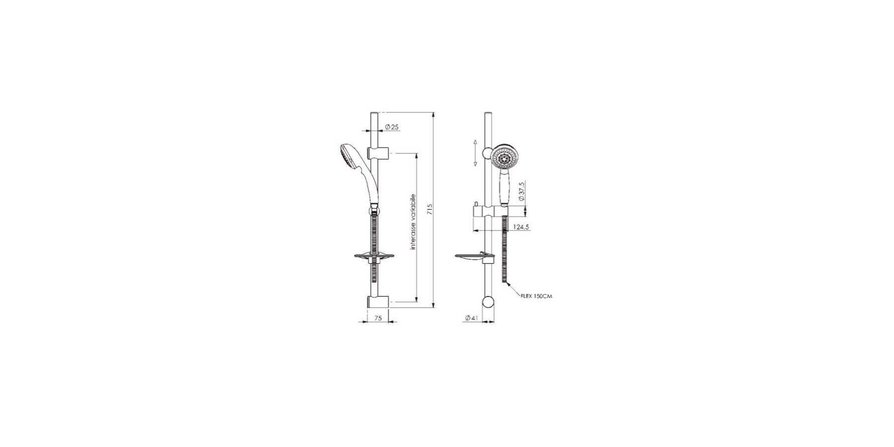 KELLY AUF- UND ABBEWEGBARE DUSCHSTANGE MIT 5 STRAHLEN