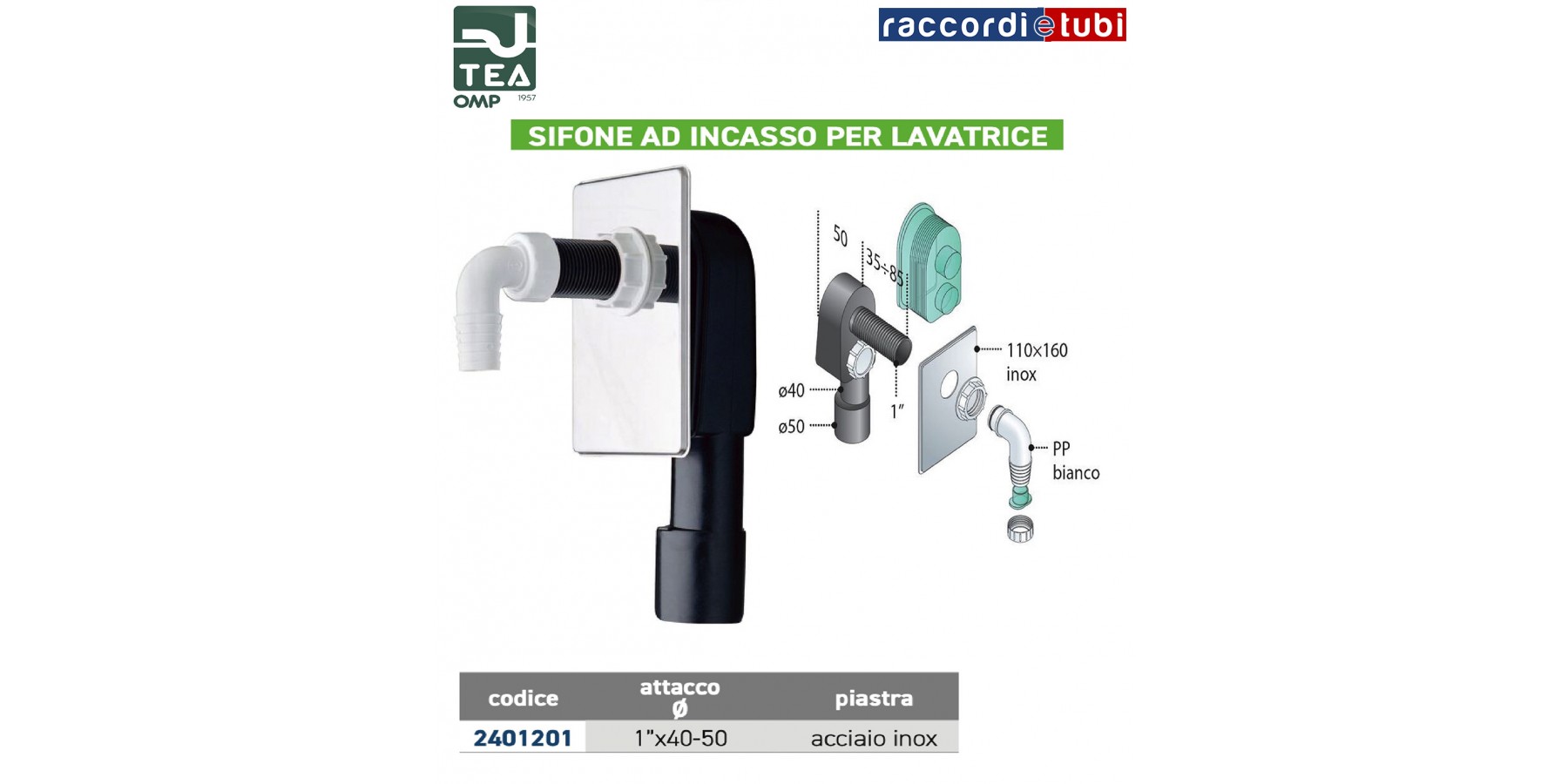 EINBAU-WASCHMASCHINENSIFON AUS PE HD D.1''x50-40mm EDELSTAHLPLATTE