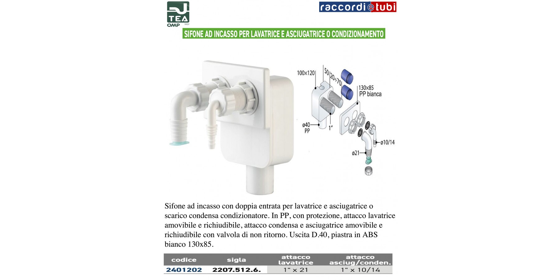 DOPPELSYFON FÜR WASCHMASCHINE UND KONDENSAT, KESSEL/TROCKNER/KLIMAANLAGE ABDECKPLATTE AUS WEIßEM ABS