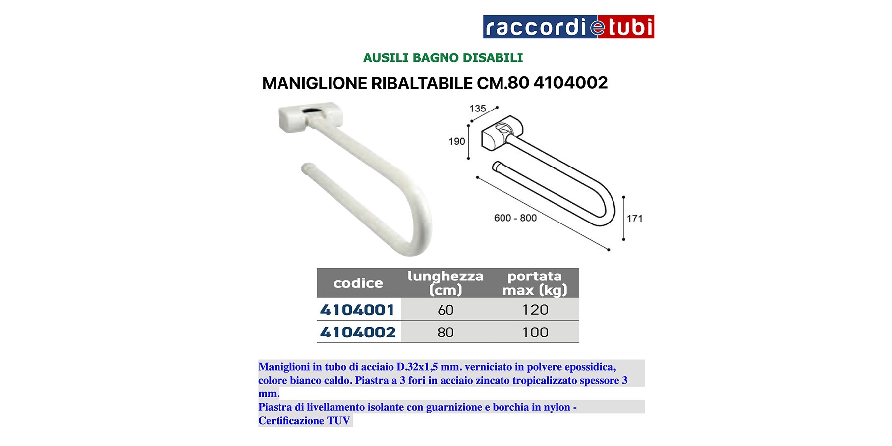 KLAPPBARER HALTEGRIFF STÜTZSTANGE CM.80 WEISS LACKIERT