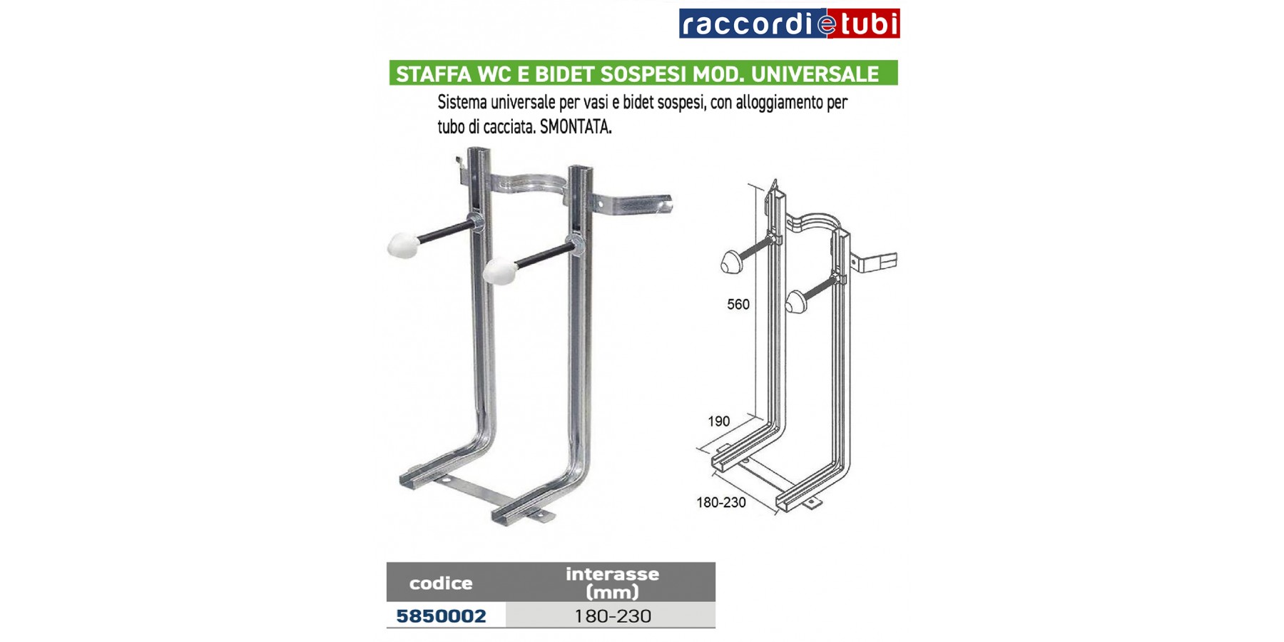 HALTERUNG FÜR HÄNGENDE WC/BIDETS UNIVERSELLS MODELL AUS VERZINKTEM STAHL