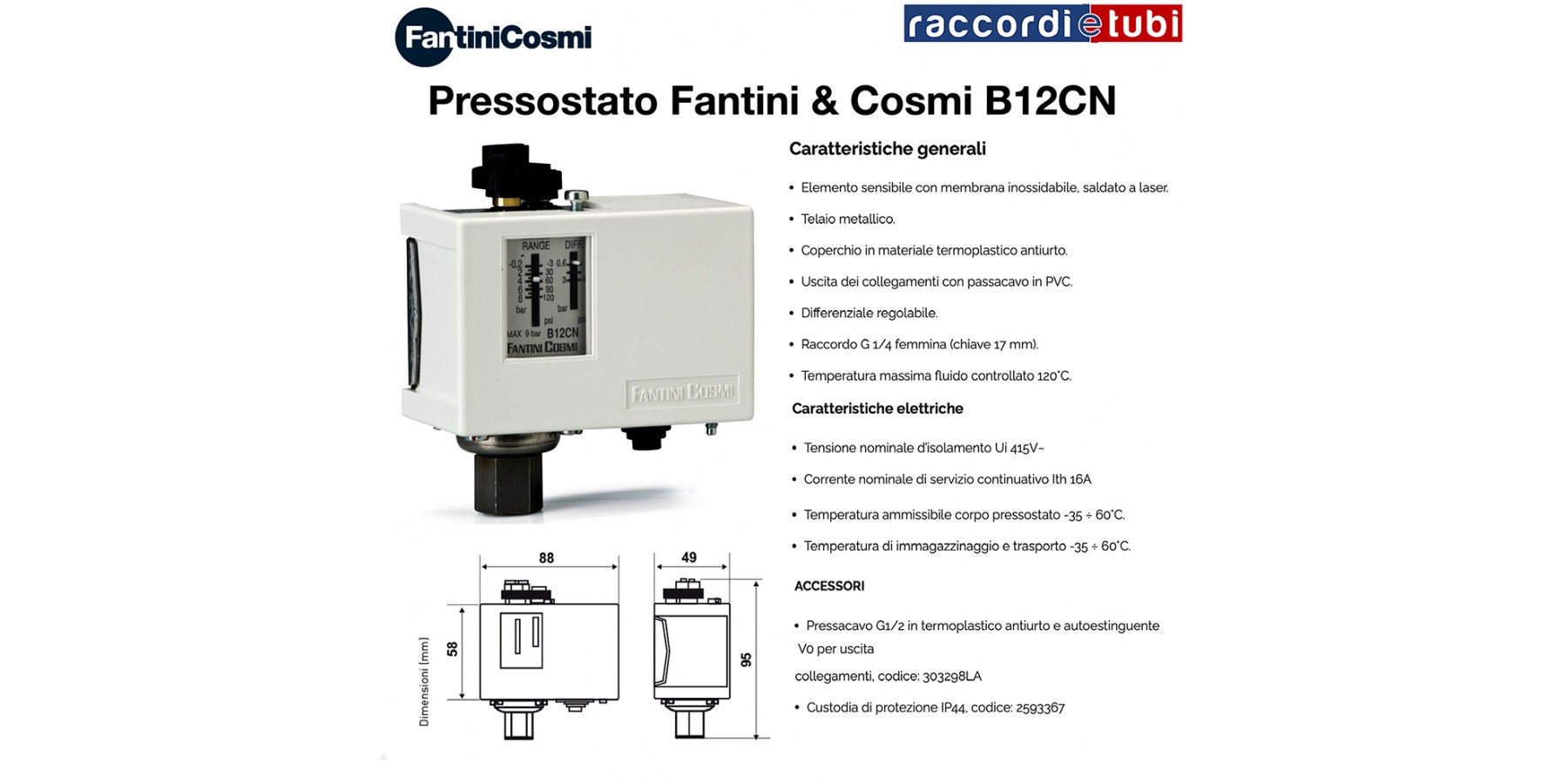 Zur Kontrolle und Regelung von nicht explosiven Flüssigkeiten und Gasen. Geeignet für Kompressionsanlagen, Kessel, Tanks, Autoklaven, Lüftungs- und Schmieranlagen. Sensorelement aus AISI 304L.