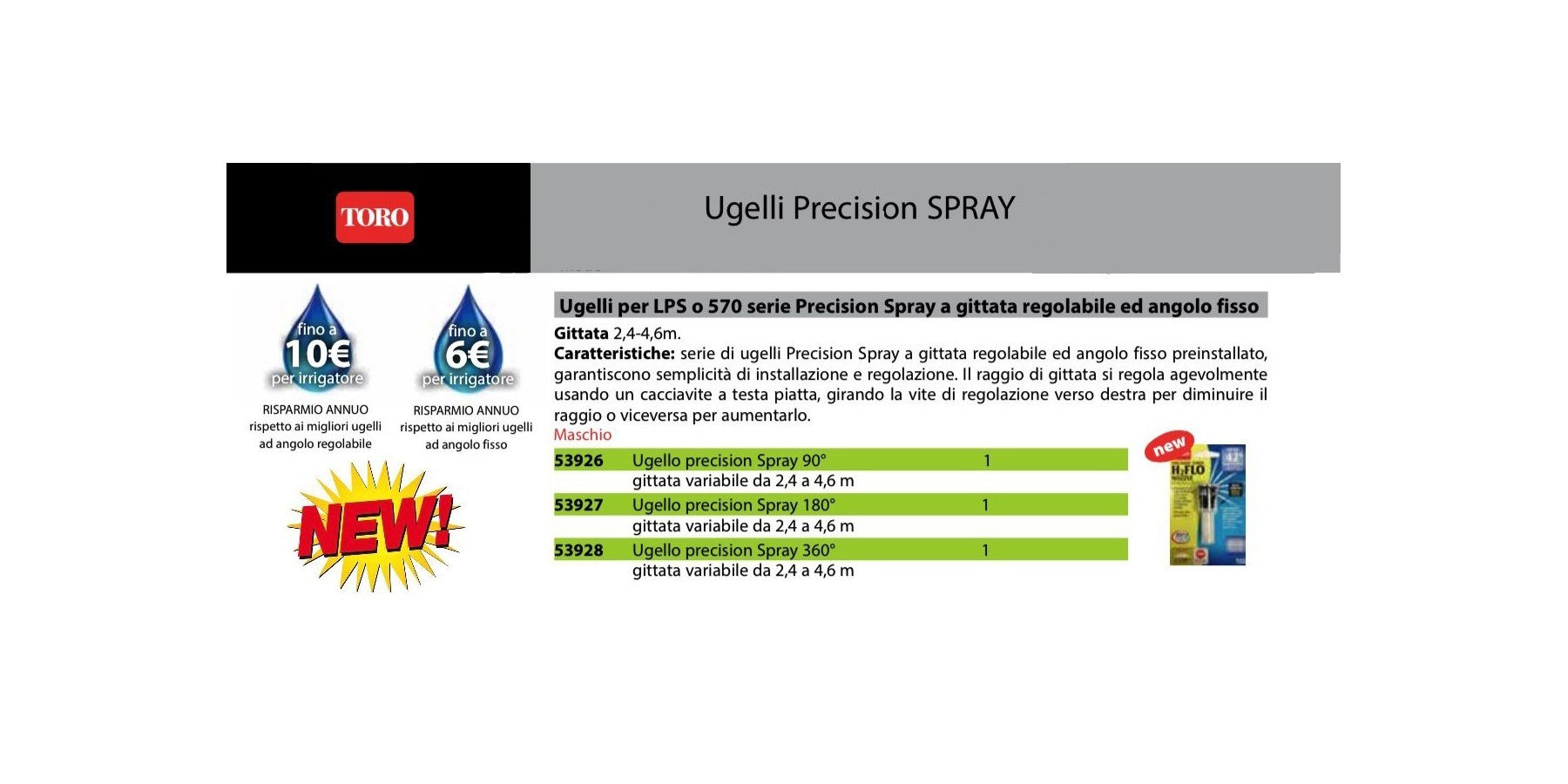 Eigenschaften: Serie von Precision Spray Düsen mit einstellbarer Reichweite und festem, voreingestelltem Winkel gewährleisten einfache Installation und Einstellung. Die Reichweite lässt sich bequem mit einem Schlitzschraubendreher einstellen, indem die Einstellschraube nach rechts gedreht wird, um die Reichweite zu verringern, oder umgekehrt, um sie zu vergrößern.