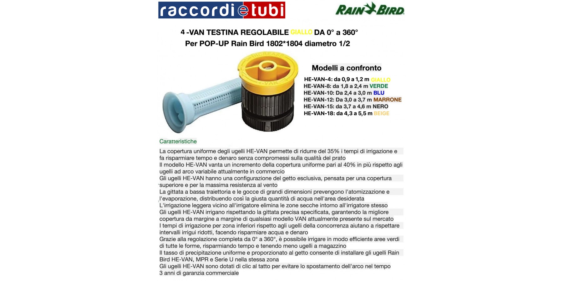Die VAN-Düsen bieten eine gleichmäßige Abdeckung über das gesamte Bewässerungsschema und sorgen so für einen stets gesunden und schönen Grünbereich. Die leichte Bewässerung in der Nähe des Sprühkopfs beseitigt trockene Stellen um den Sprühkopf herum. Die VAN-Düsen erzeugen große, windresistente Tropfen, die die Zerstäubung und Verdunstung verhindern und somit die richtige Wassermenge im gewünschten Bereich verteilen.