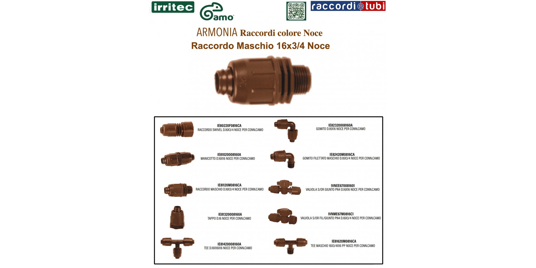 IRRITEC-CAMO Anschlussstück Durchmesser 16 für PE-Rohr mit niedriger Dichte und Tropfschlauch, besonders gewidmet aufgrund seiner Farben Noce und Bambus, NEUES IRRITEC-Projekt Camo