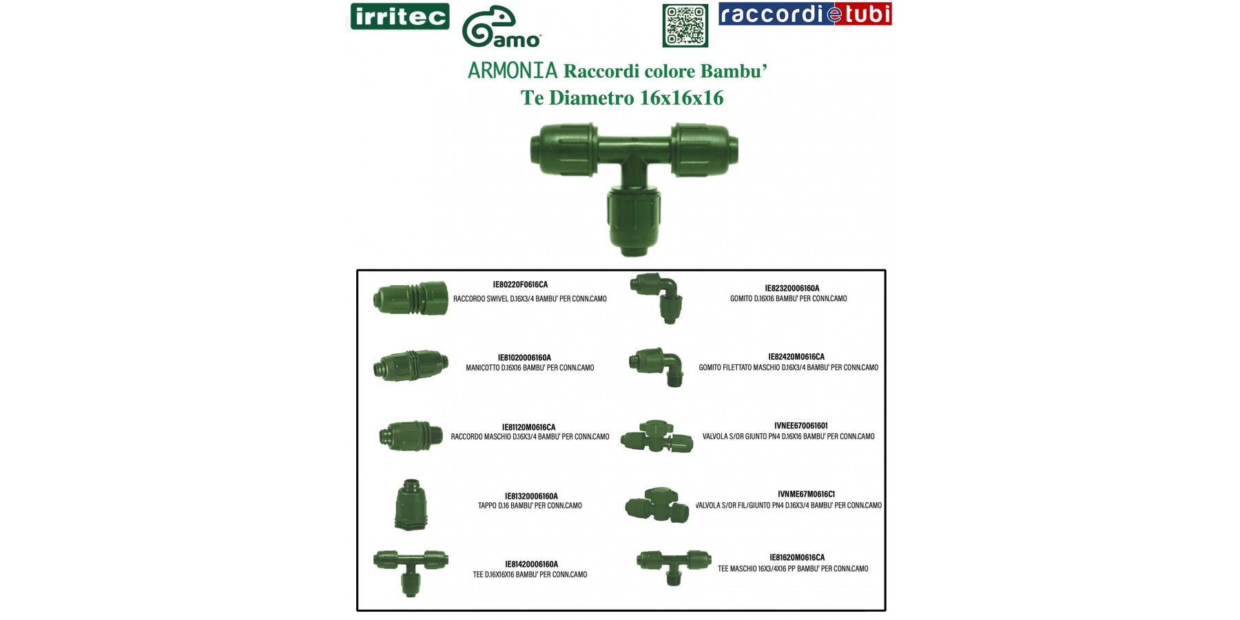 IRRITEC-CAMO Fittings Durchmesser 16 für PE-Rohre mit niedriger Dichte und Tropfzone, speziell gewidmet für seine Farben Walnuss und Bambus. NEUES IRRITEC Camo Projekt