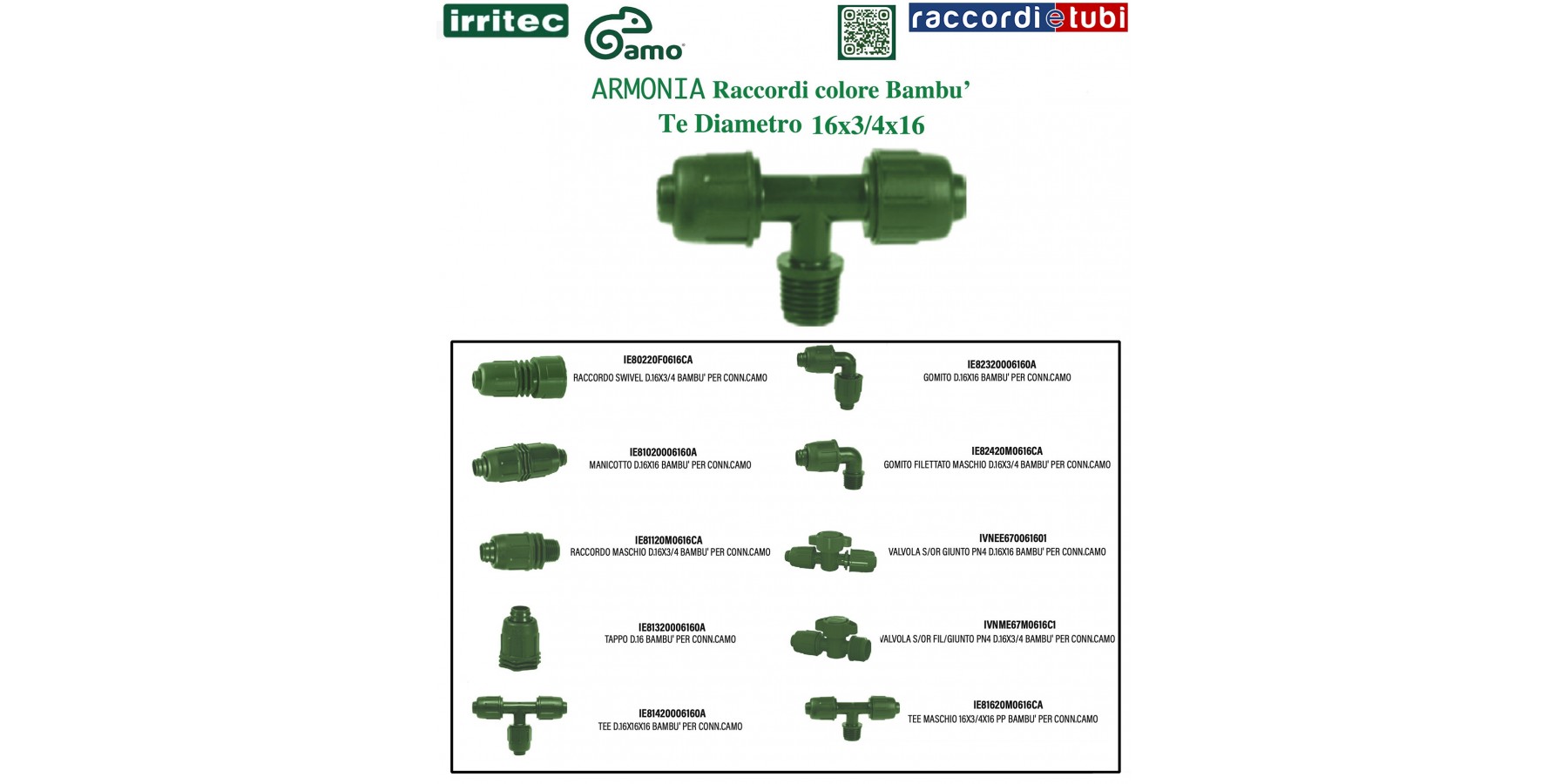 IRRITEC-CAMO Fittings Durchmesser 16 für PE-Rohre mit niedriger Dichte und Tropfrohr, speziell gewidmet für seine Farben Nussbaum und Bambus. Neues IRRITEC Camo Projekt