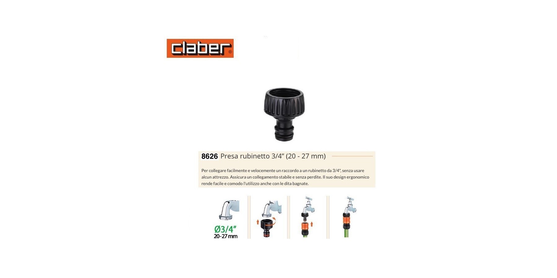 Um einen Schlauchanschluss schnell und einfach an einen 3/4" Wasserhahn anzuschließen, ohne Werkzeug zu verwenden. Sorgt für eine stabile und dichte Verbindung. Das ergonomische Design macht die Handhabung auch mit nassen Fingern einfach und komfortabel.