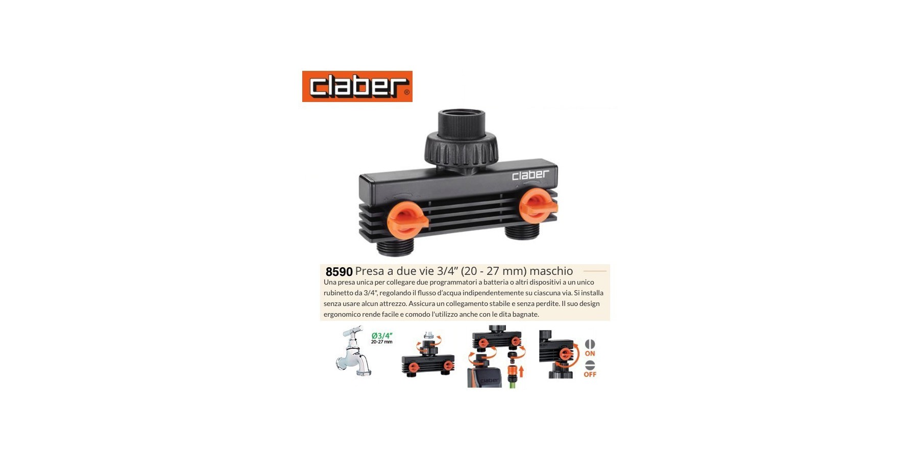 CLABER ZWEIFACH STECKDOSE MIT 3/4 M GEWINDEHAHN 8590