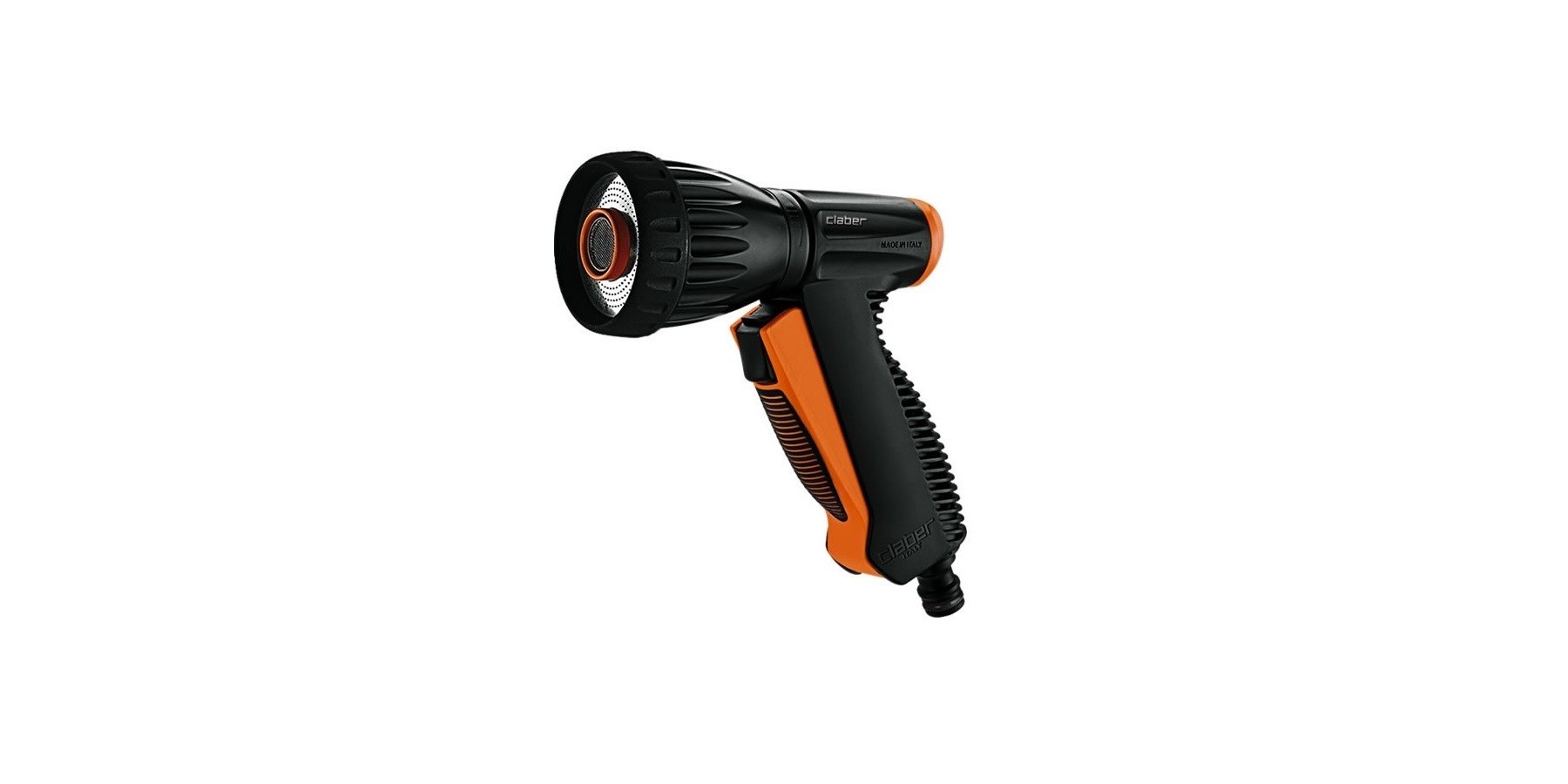 Die Pistolendüse Claber Balcony Confort verfügt über einen weichen, ergonomischen Gummigriff, während der ebenfalls aus Gummi gefertigte Ring stoßfest ist, geöffnet, inspiziert und auch gereinigt werden kann. Der integrierte Belüfter erzeugt einen sanften Wasserstrahl, der mit Luftblasen vermischt wird, um eine tropffreie Bewässerung zu gewährleisten.