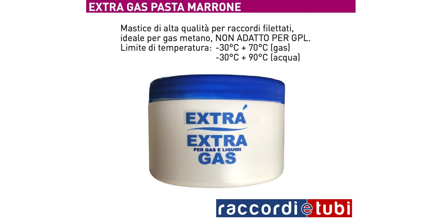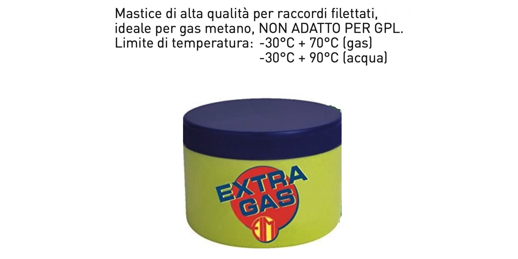 EXTRA GAS ist besonders geeignet für Methangas. Ideal für Wasser-, Luft- und Lebensmittelanlagen. Nicht toxisch, korrodiert nicht, geruchlos und behält seine Plastizitäts- und Viskositätseigenschaften über die Zeit bei. Nicht für LPG geeignet.