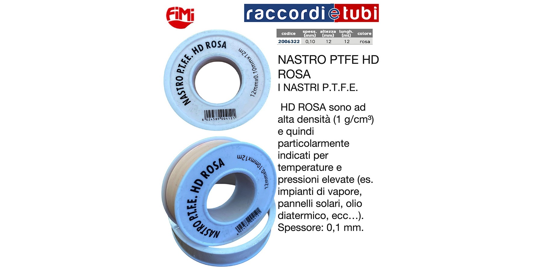 DIE P.T.F.E. HD und HD ROSA BÄNDER sind hochdicht (1 g/cm3) und daher besonders geeignet für hohe Temperaturen und Drücke (z.B. Dampfanlagen, Solarpaneele, Thermoöl etc.). Stärke: 0,1 mm.