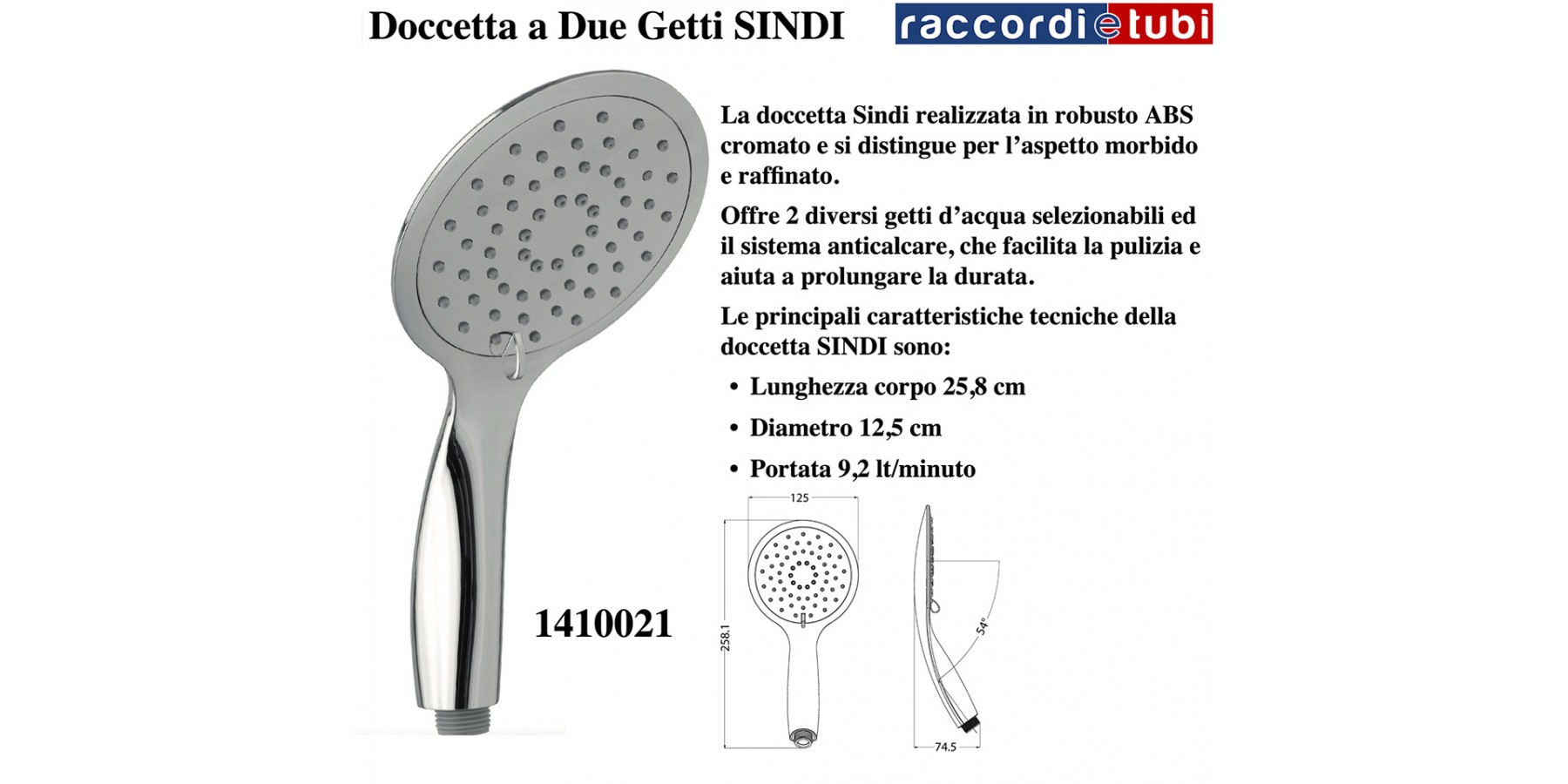 SINDI DUSCHBRAUSE MIT ZWEI STRAHLEN AUS VERCHROMTEM ABS