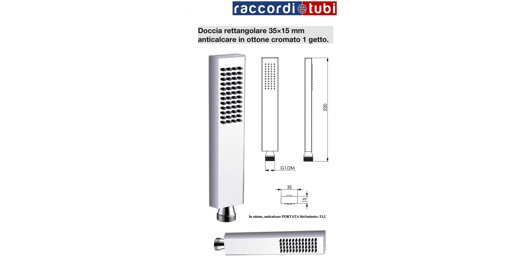 RECHTECKIGE DUSCHDÜSE AUS VERCHROMTEM MESSING 1412002 mm 35x15