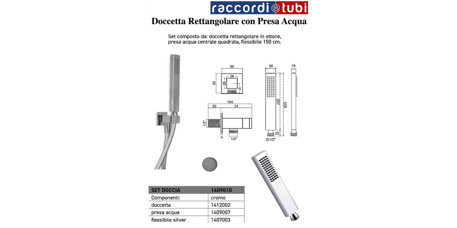 DUSCHSET BESTEHEND AUS: RECHTECKIGER DUSCHKOPF AUS MESSING MIT EINEM DURCHFLUSS VON 23,2 LITERN PRO MINUTE