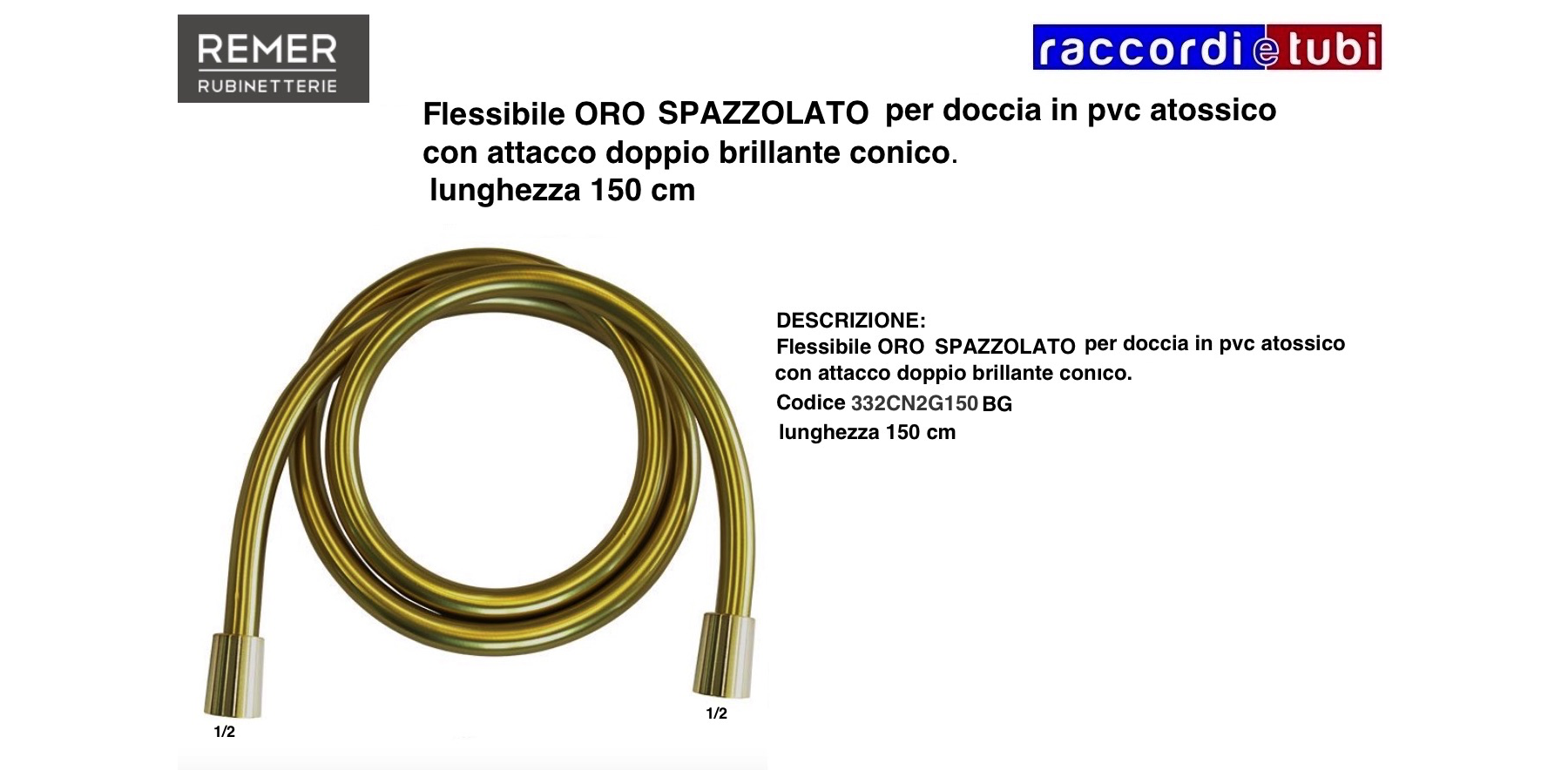 Gebürsteter GOLD-Duschschlauch aus ungiftigem PVC mit doppelt glänzendem konischem Anschluss.
