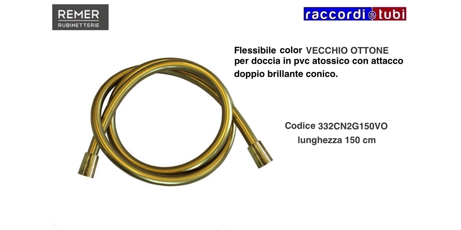 Schlauch in ALT-MESSING-Farbe für die Dusche aus ungiftigem PVC mit doppeltem glänzendem konischem Anschluss.