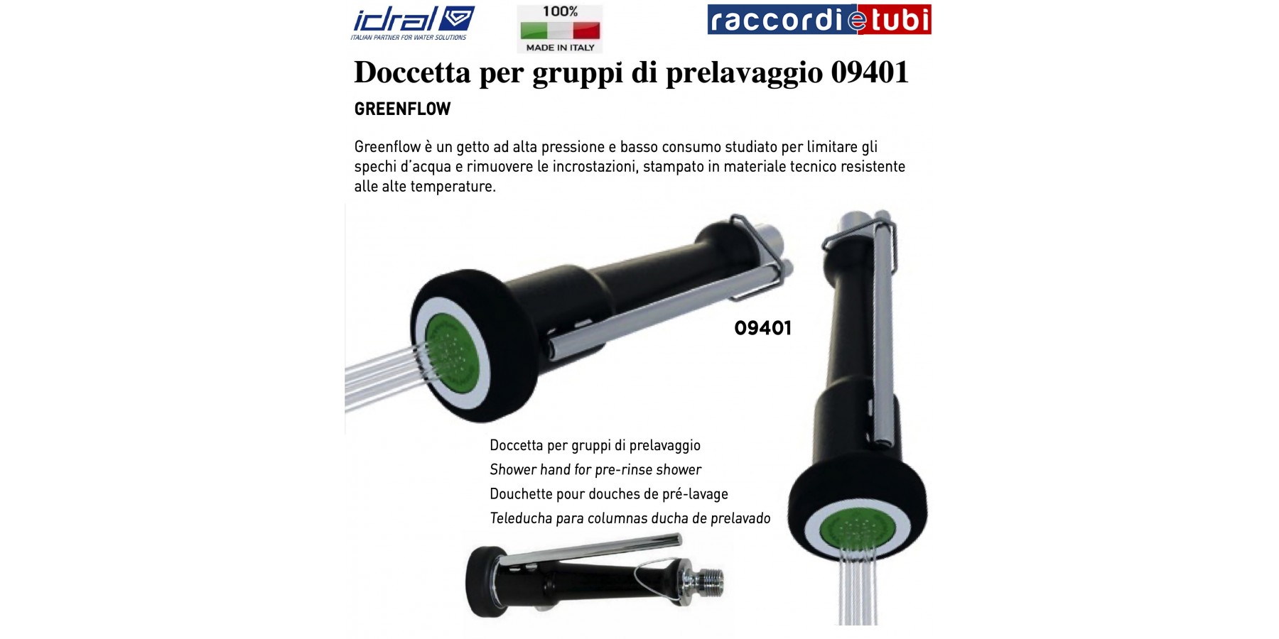 Schwanzbrause für Vorwaschgruppen 1/2" mit Hebelsteuerung und stoßfestem Diffusor