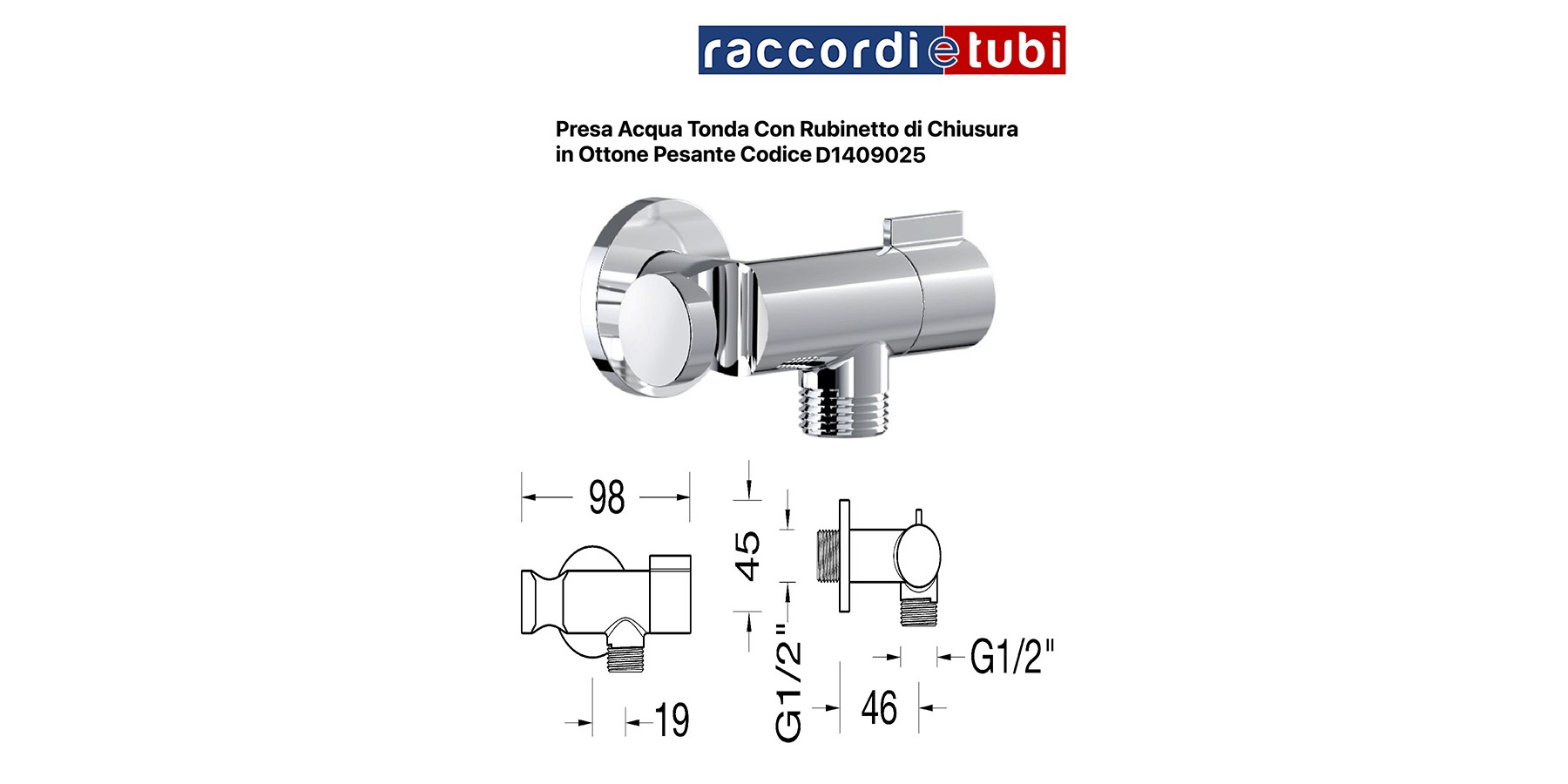 RUNDES WASSERVENTIL MIT ABSCHALTKRAN AUS VERCHROMTEM MESSING