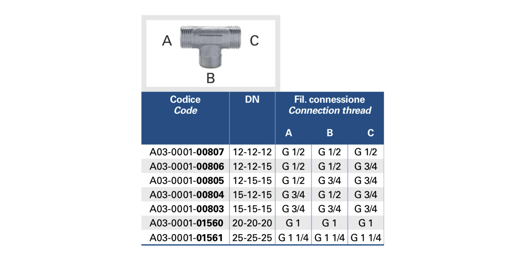 T-Stücke M/M/M aus vernickeltem Messing mit männlichem ISO 228 G Gewinde und Anlauffläche (A-B-C)