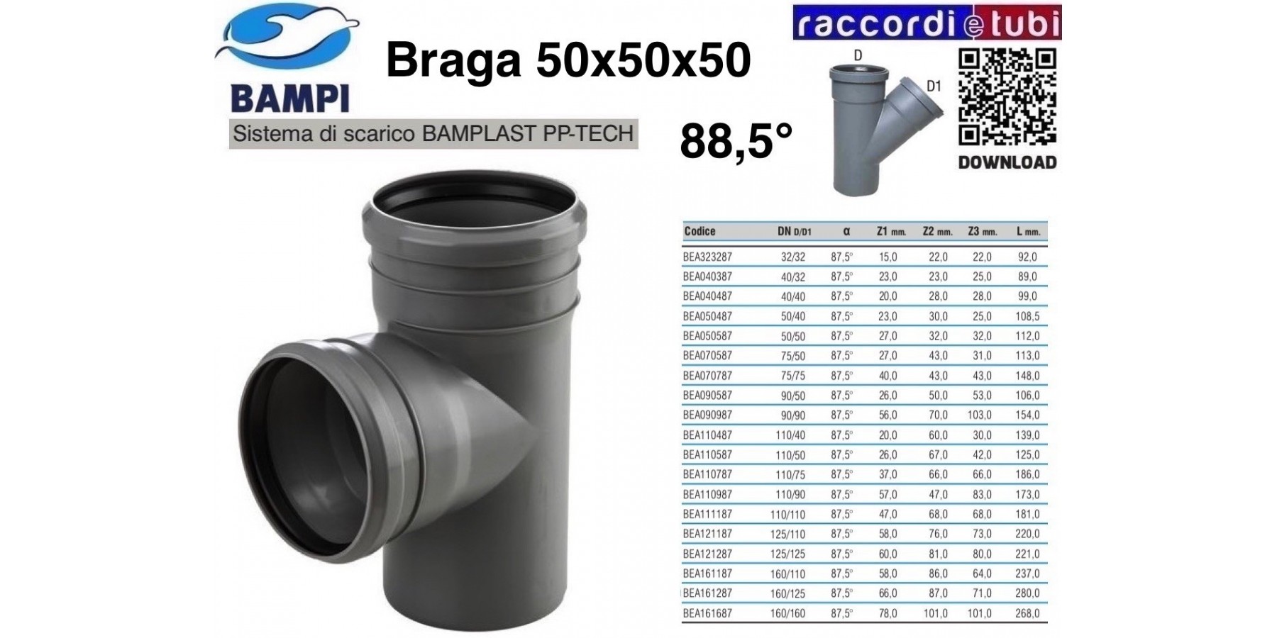 Einfaches und schnelles System zur Installation dank Steckverbindung, die durch eine Elastomerdichtung gesichert ist. Die Muffenverbindung gewährleistet den notwendigen Platz für eventuelle Anlagen-Ausdehnungen mit einer zuverlässigen und dauerhaft dichten Verbindung. Das BAMPLAST PP-TECH System aus Polypropylen ist kompatibel mit Verbindungen aus anderen Kunststoffmaterialien wie PP/PE-HD/PVC in Standarddurchmessern.
