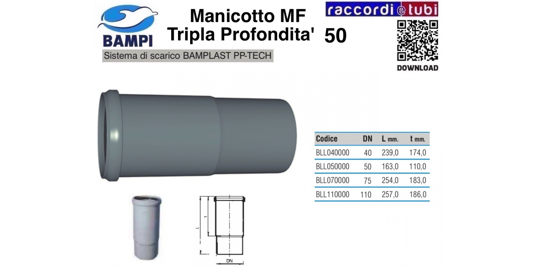 Einfaches und schnelles System dank Steckverbindung mit elastomerer Dichtung. Die Muffenverbindung bietet ausreichend Spielraum für thermische Ausdehnungen des Systems mit zuverlässiger und dauerhafter Dichtheit. Das BAMPLAST PP-TECH Polypropylensystem ist kompatibel mit Verbindungen aus anderen Kunststoffen wie PP/PE-HD/PVC in Standarddurchmessern.