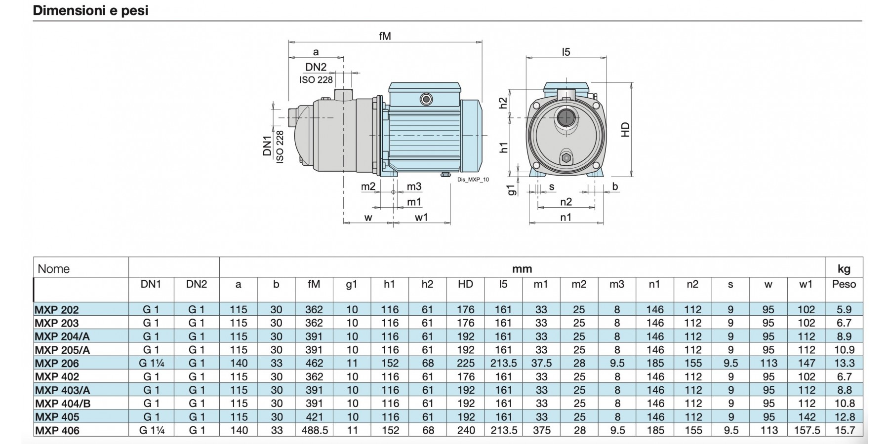 MXPM: Einphasenmotor 230 V ± 10% mit Thermoschutz Kondensator im Anschlusskasten eingebaut. Isolierung Klasse F.