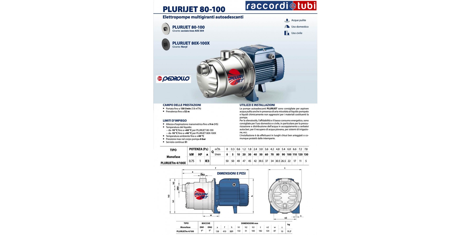 Aufgrund ihrer Geräuscharmut, Zuverlässigkeit und ihres niedrigen Energieverbrauchs eignen sie sich besonders für den häuslichen und zivilen Gebrauch, insbesondere zur Druckerhöhung und Wasserverteilung in Kombination mit Druckbehältern, zur Regenwassernutzung, für Bewässerungssysteme usw.