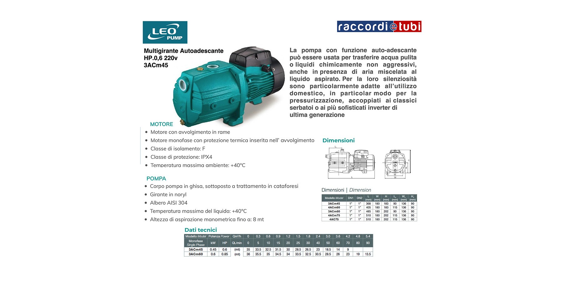• Einphasiger Motor mit integriertem thermischem Schutz