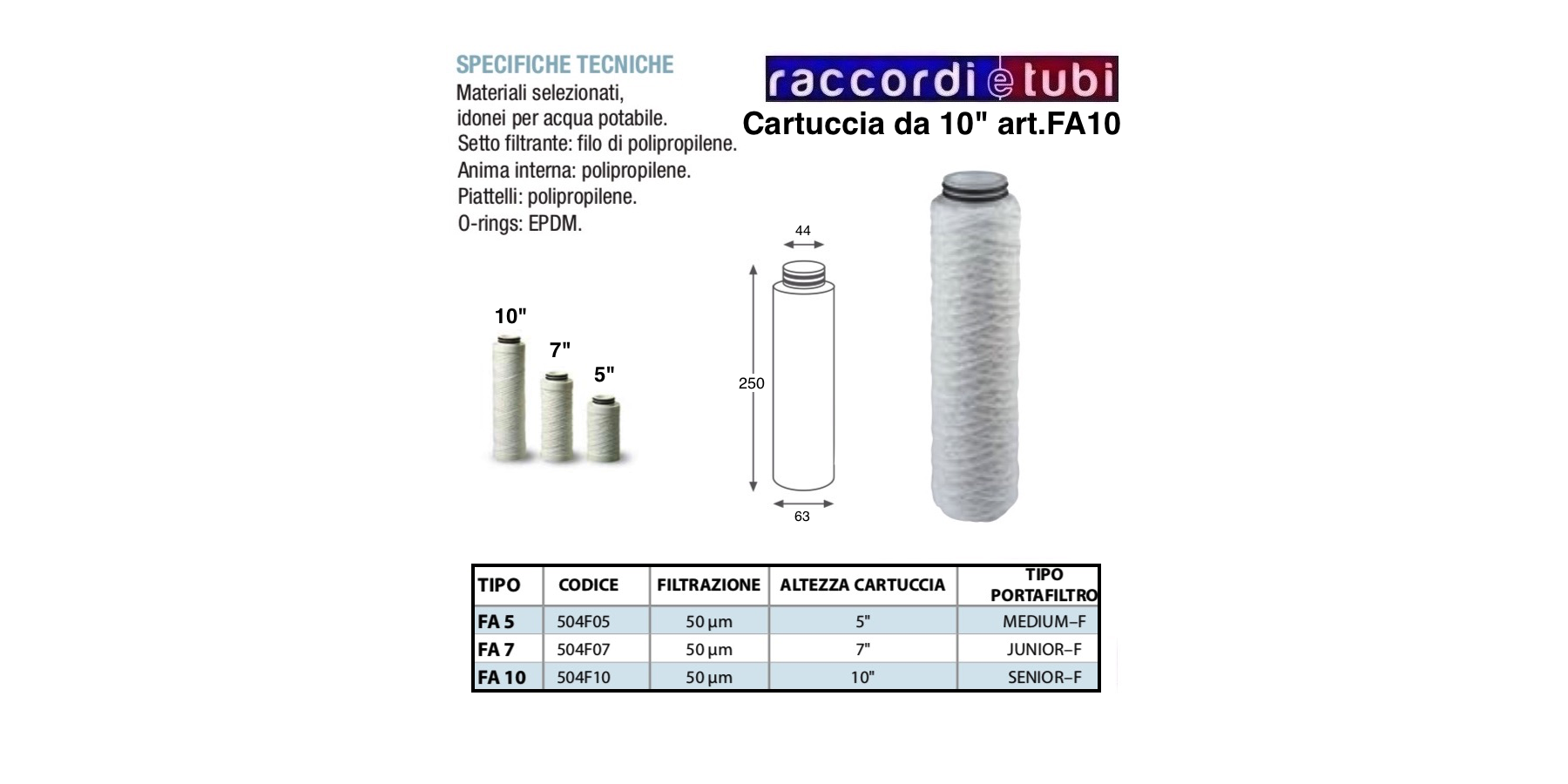 GEWICKELTE FILTERKARTUSCHE AUS DRAHT 10" MIT O-RING FA10 504F10