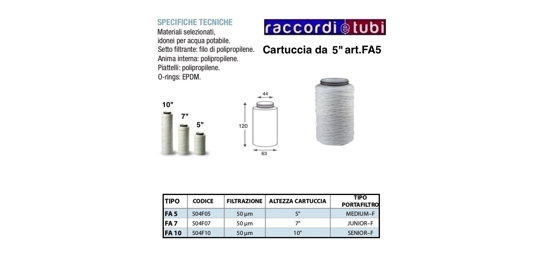 GEWICKELTE FILTERKARTRIDGE AUS DRAHT 5" MIT O-RING FA5 504F05