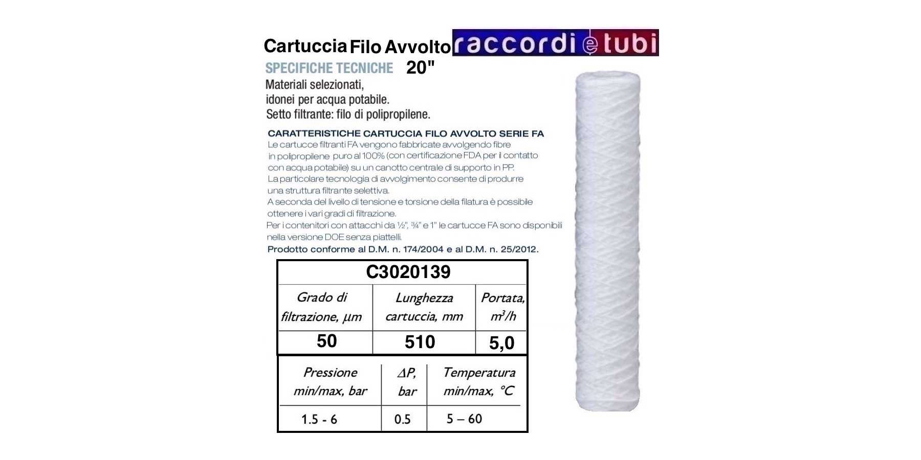 EIGENSCHAFTEN DER GEWICKELTEN FILTERKARTUSCHE SERIE FA
