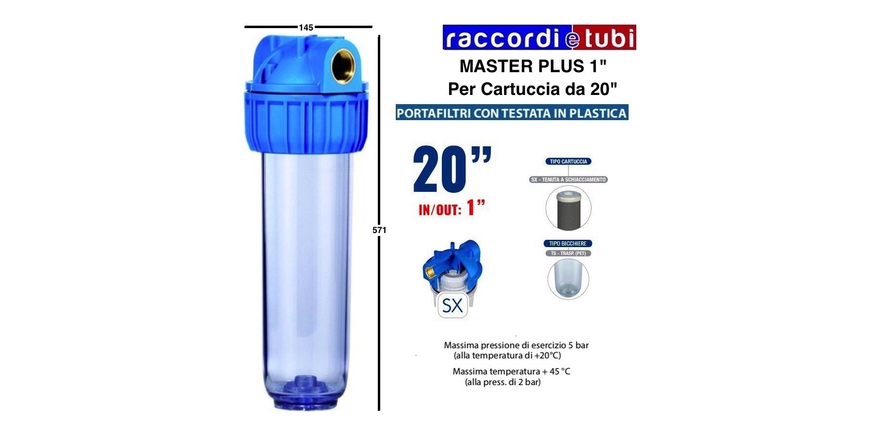FILTERGEHÄUSE DURCHMESSER 1" FÜR 20" DRUCKFILTERKARTUSCHE