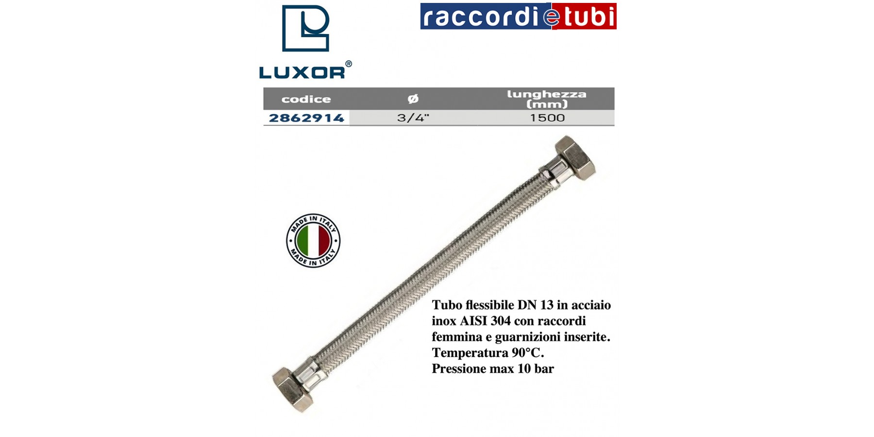 EDELSTAHL-ZULAUFSCHLAUCH DN13 3/4'' - 1500mm WASCHMASCHINE-GESCHIRRSPÜLER MIT VERCHROMTEN MESSINGMUTTERN