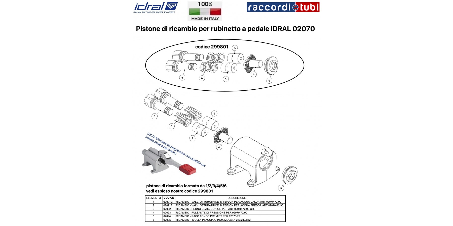 ERSATZPISTON FÜR DEN PROGRESSIVEN MISCHER 02070