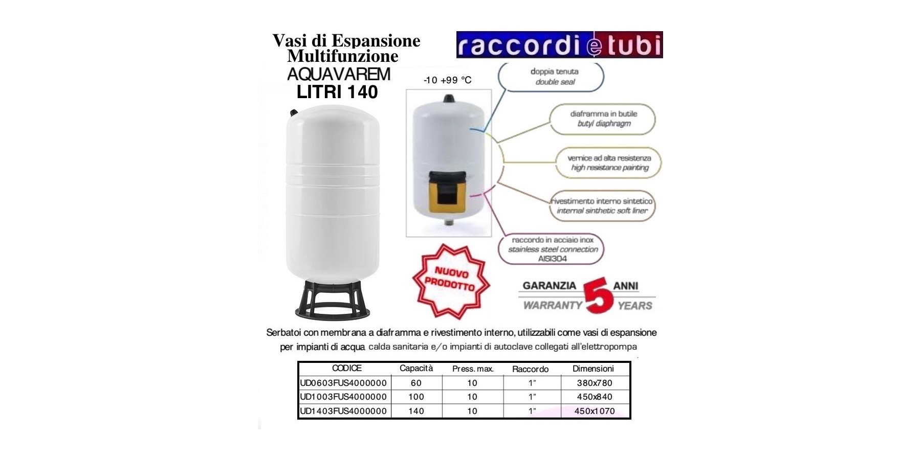 Membranausdehnungsbehälter mit Innenbeschichtung, verwendbar als Ausdehnungsgefäß für Warmwassersysteme
