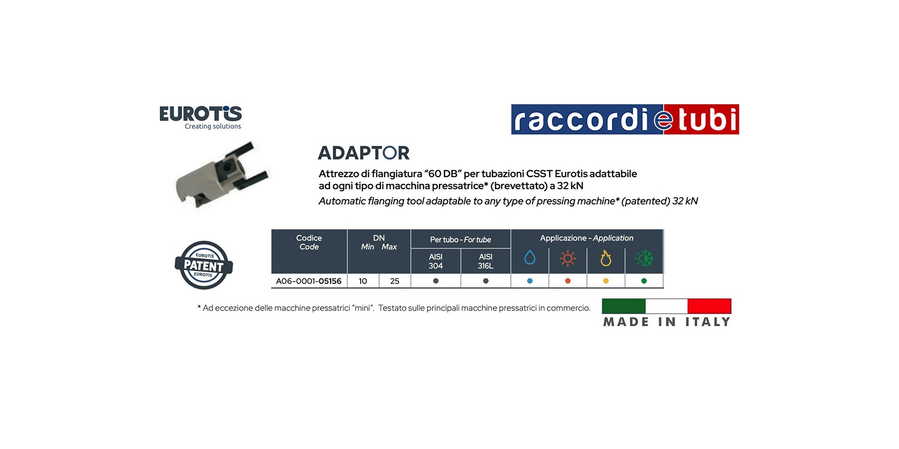 Flanschwerkzeug "60 DB" für CSST Eurotis Rohrleitungen, anpassbar an jede Art von Pressmaschine* (patentiert) mit 32 kN