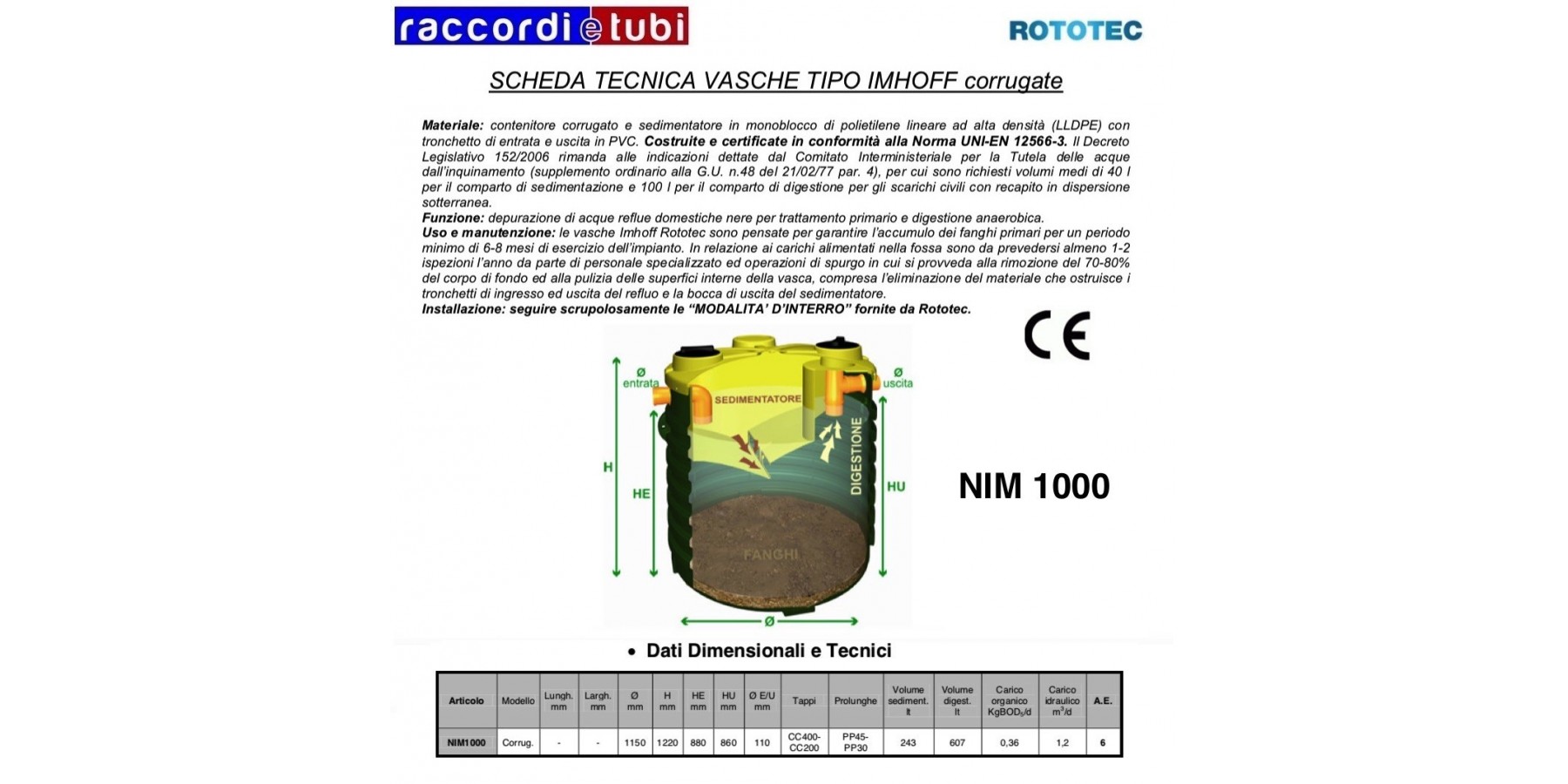 Das Rohabwasser wird einer mechanischen Vorbehandlung unterzogen, um Material zu entfernen, das aufgrund seiner Größe und Eigenschaften Schwierigkeiten bei der ordnungsgemäßen Durchführung der nachfolgenden Reinigungsphasen verursachen würde. In einem häuslichen Abwasser machen sedimentierbare Feststoffe 60-70 % der Schwebstoffe aus, sodass sie durch primäre Absetzbehandlungen entfernt werden können. Diese Art der Behandlung ermöglicht auch eine gleichzeitige Entfernung von 25-30 % des organischen Gehalts, gemessen als BSB5. Imhoff-Becken werden als Primärbehandlung für Schwarzwasser aus Toiletten in Haushalten oder vergleichbaren Abwassern verwendet. Sie bestehen aus zwei übereinanderliegenden, hydraulisch verbundenen Kammern. In der oberen Kammer sinken die sedimentierbaren Feststoffe durch die Schwerkraft auf den Boden des Absetzbeckens, der eine passende Neigung hat, um den Schlamm in die untere Kammer zu leiten, in der die Faulung stattfindet; diese Art von Anlage nutzt die kombinierte Wirkung einer mechanischen Sedimentationsbehandlung und einer biologischen Kaltanaerobfaulung. Imhoff-Becken müssen von einer Entfettungsstufe vorgelagert sein; so kann das behandelte Abwasser (sofern in den örtlichen Vorschriften vorgesehen) in die Versickerung eingeleitet oder zu einer weiterführenden Sekundärbehandlung geführt werden, um es für die Einleitung in das geeignete Vorfluter zu veredeln.