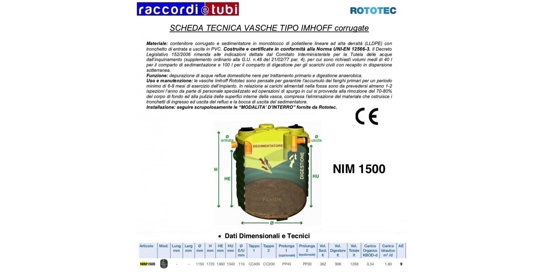Das Rohabwasser wird mechanisch vorbehandelt, um Materialien zu entfernen, die aufgrund ihrer Größe und Eigenschaften Schwierigkeiten bei den nachfolgenden Reinigungsphasen verursachen würden. Bei kommunalem Abwasser sind 60-70 % der Schwebstoffe sedimentierbar und können daher durch primäre Absetzverfahren entfernt werden. Diese Art der Behandlung ermöglicht auch die gleichzeitige Entfernung von 25-30 % des organischen Gehalts, gemessen als BSB5. Imhoff-Becken werden als Primärbehandlung für Schwarzwasser aus WC-Anlagen im häuslichen oder vergleichbaren Bereich eingesetzt. Sie bestehen aus zwei übereinander liegenden, hydraulisch verbundenen Kammern. In der oberen Kammer sinken die sedimentierbaren Feststoffe aufgrund der Schwerkraft zum Boden des Absetzers ab, welcher eine geeignete Neigung aufweist, um das Schlammaufsteigen in die untere Kammer zu ermöglichen, wo die Faulung stattfindet. Diese Anlage nutzt die Kombination aus einer mechanischen Absetzbehandlung und einer biologischen kalten anaeroben Faulung. Imhoff-Becken müssen durch eine Entfettungsstufe vorgelagert sein; so kann das behandelte Abwasser entweder zur unterirdischen Versickerung (sofern durch lokale Vorschriften erlaubt) eingeleitet oder zu einer nachgeschalteten Sekundärbehandlung geführt und in das geeignete Vorflutgewässer eingeleitet werden.